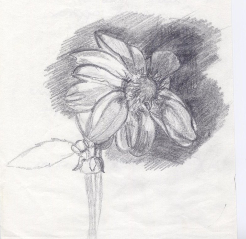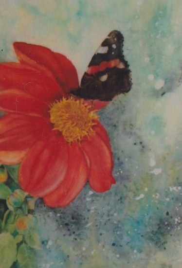 The dahlia and the butterfly were then completed using intense washes of paint.